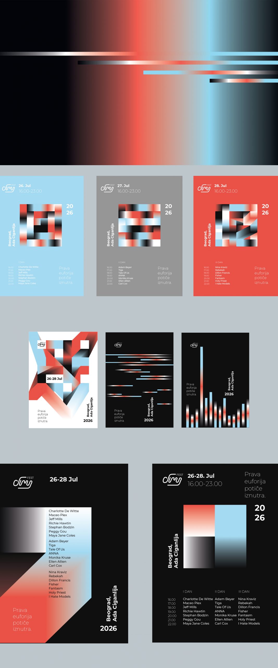 2. Визуелни идентитет музичког фестивала са кампањом (синтезни пројекат рађен на предметима: Графичке комуникације, Просторна графика и Плакат)